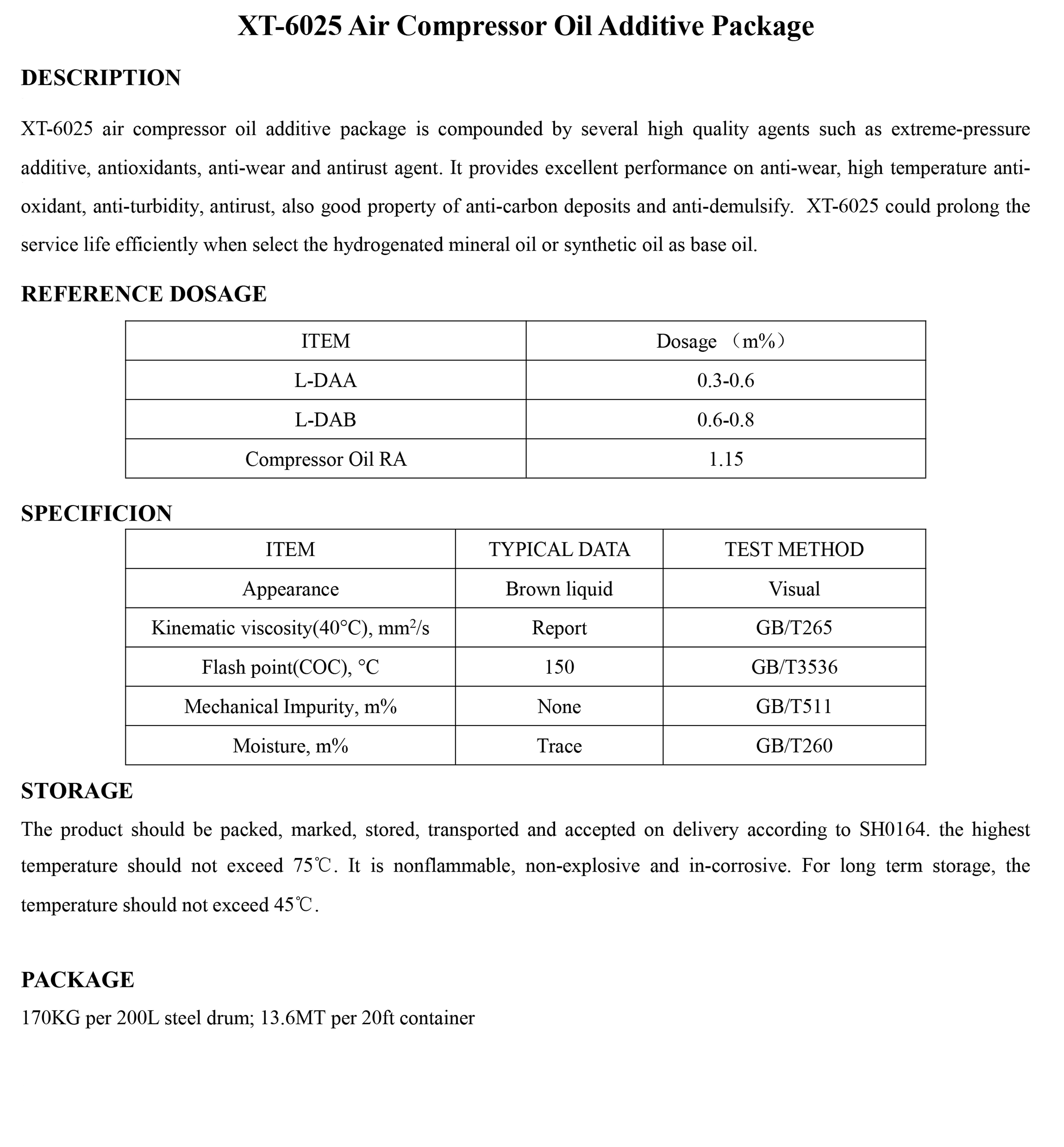 XT-6025 Air Compressor Oil Additive Package-Industrial Oil Additive Package-錦州新興石油添加劑有限責(zé)任公司